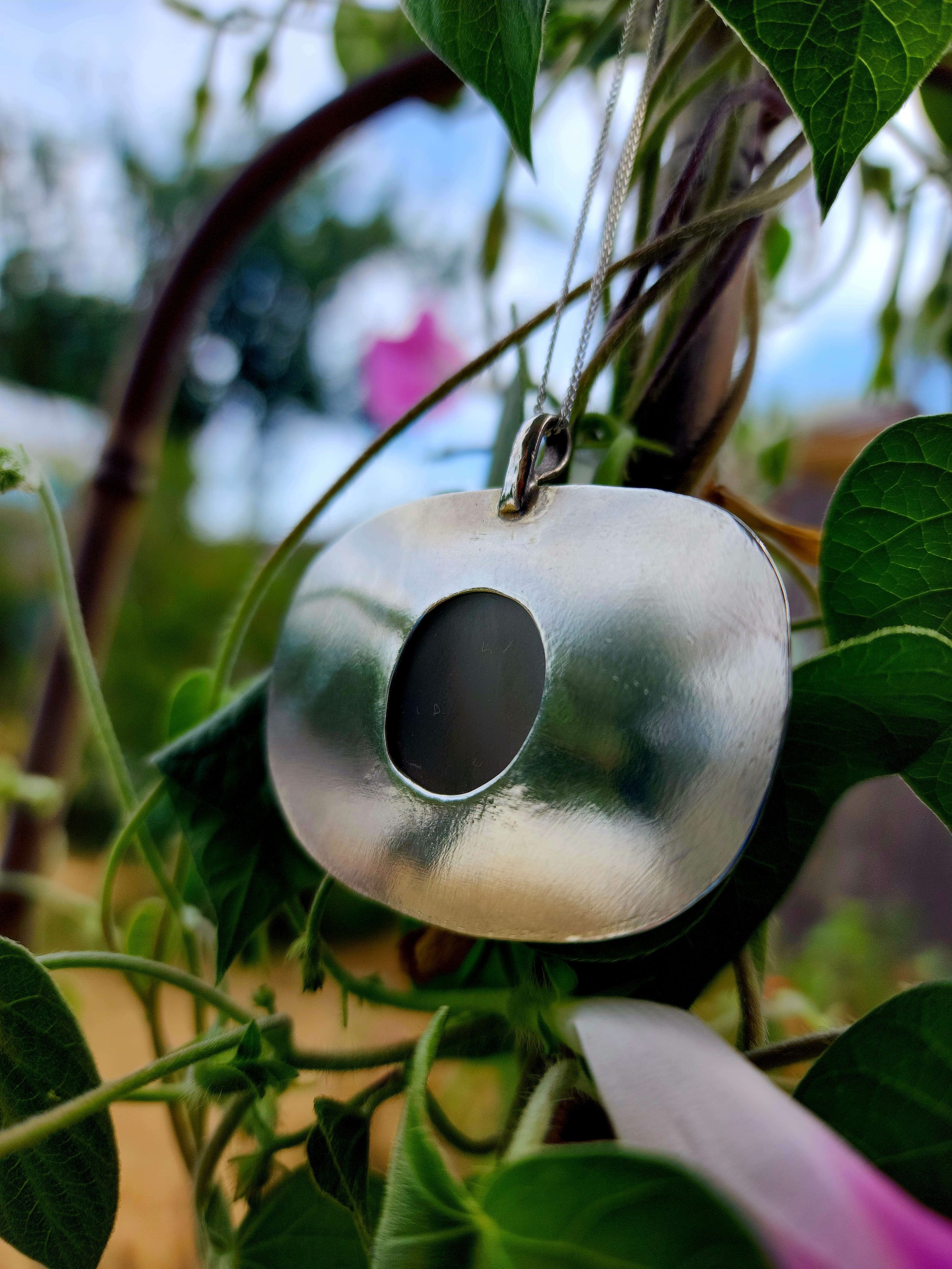 Discover the magic of the South Santiam River with this Agate Spiral Necklace. Featuring a clear banded agate set in an open-back design that lets light dance through its flowing spirals, this piece captures nature’s whimsy. Crafted in sterling silver and paired with an 18-inch chain secured by a lobster clasp.